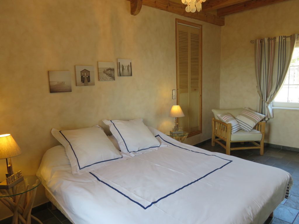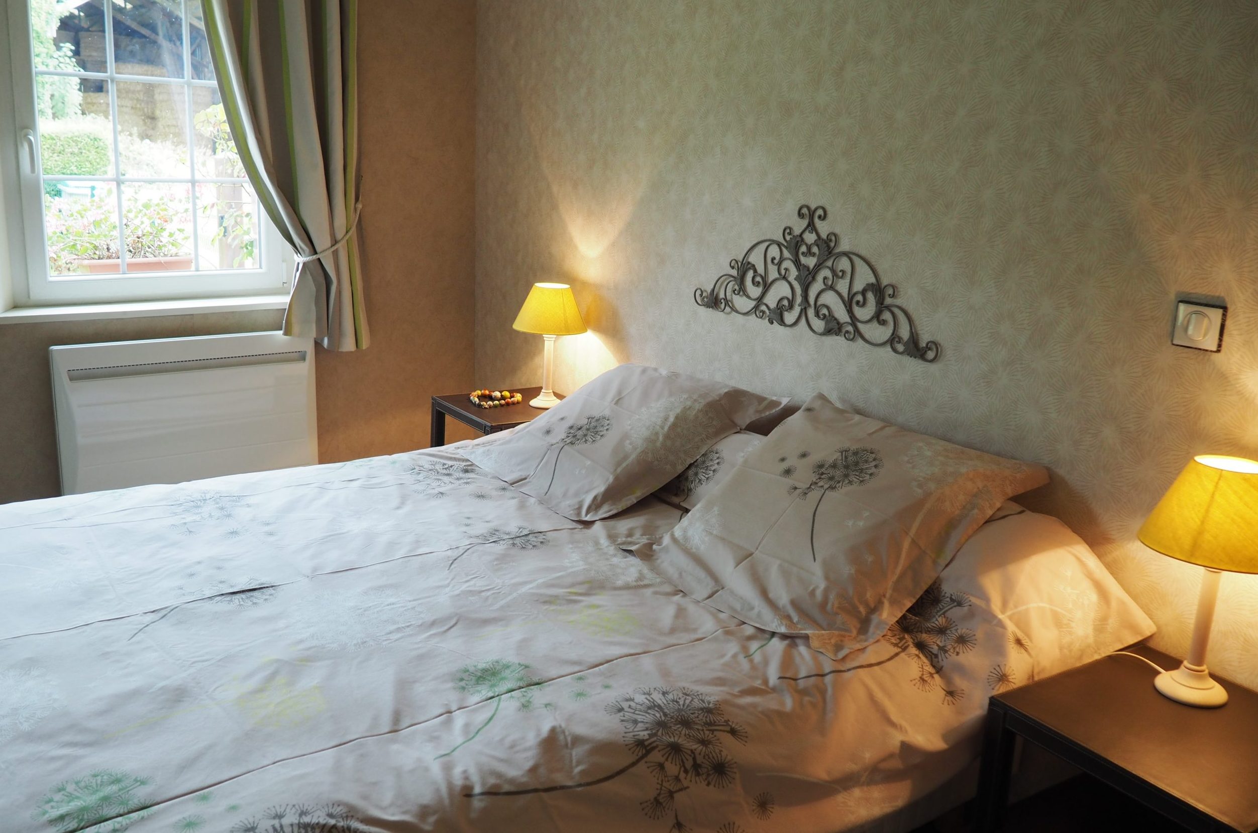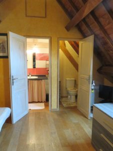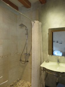 La Chambre beige, au rez de chaussé est équipée d’un lit (en 160 cms) et d’une salle de bain privative avec douche de plein pied, lavabo et un toilette séparé.