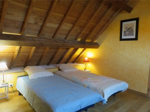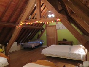 Une grande chambre équipée de 4 lits: 1 double en 140 cms et 3 lits simples.
