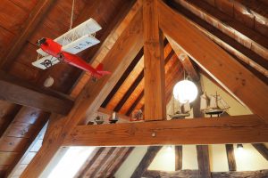 La salle de bain au même étage est équipée d’un lavabo et d’une baignoire, ainsi qu’un toilette séparé.