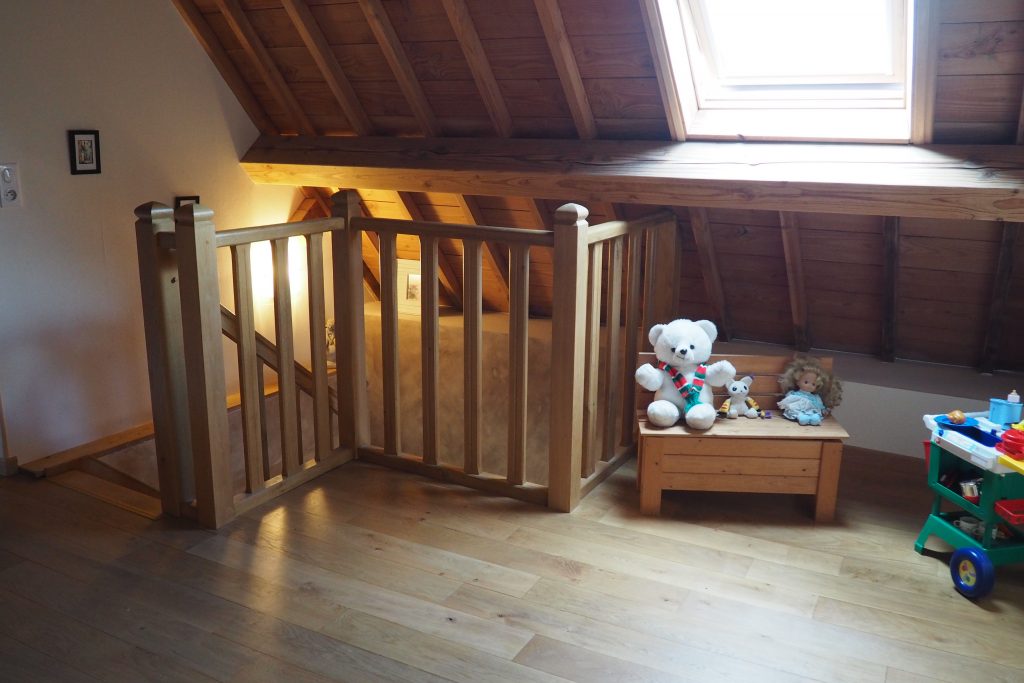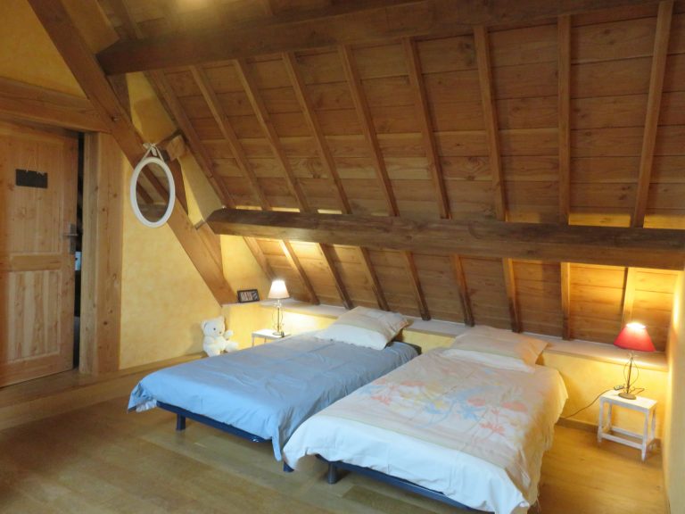 La pièce palièrecôté dortoir possède 2 lits en 90cms, une salle de bains adjacente avec douche et lavabo et un toilette séparé.